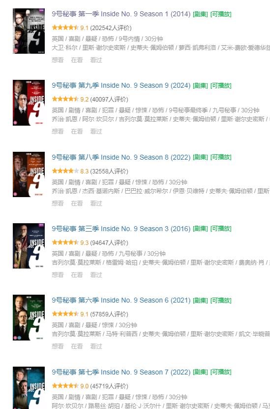【高分经典英剧】9号秘事(2014)9季全[4K+1080P][内嵌中英字幕]【50G】[附万圣节特辑]